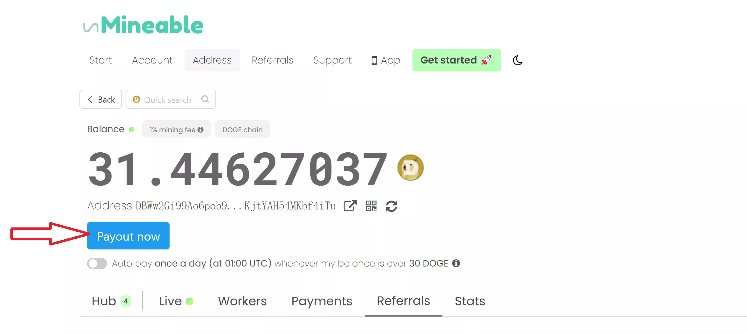 3、狗狗币余额查询:https://unmineable.com/address/后面这里填写你的狗狗币地址